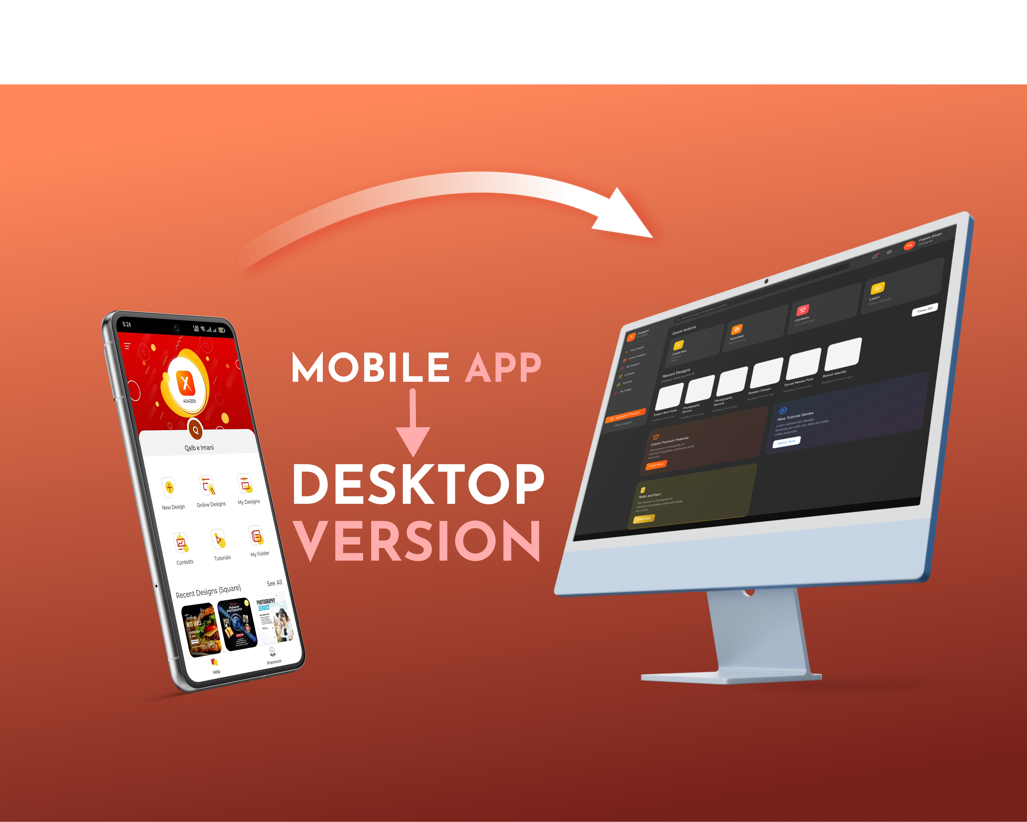 Mobile-to-desktop version UI design of a Designing App (DesignX).