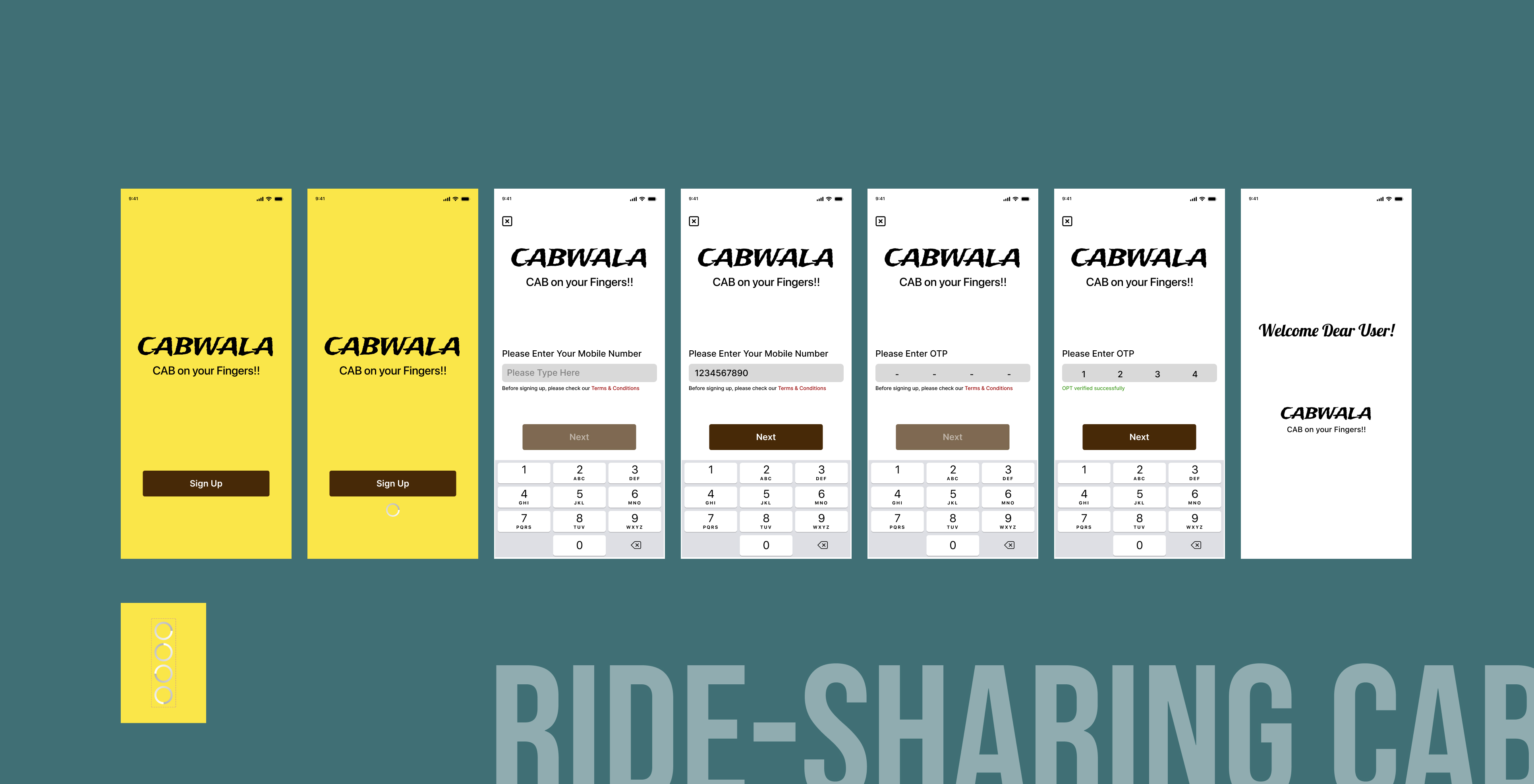 Complete onboarding flow for a ride-sharing application, featuring splash screens and login interface with intuitive user experience.