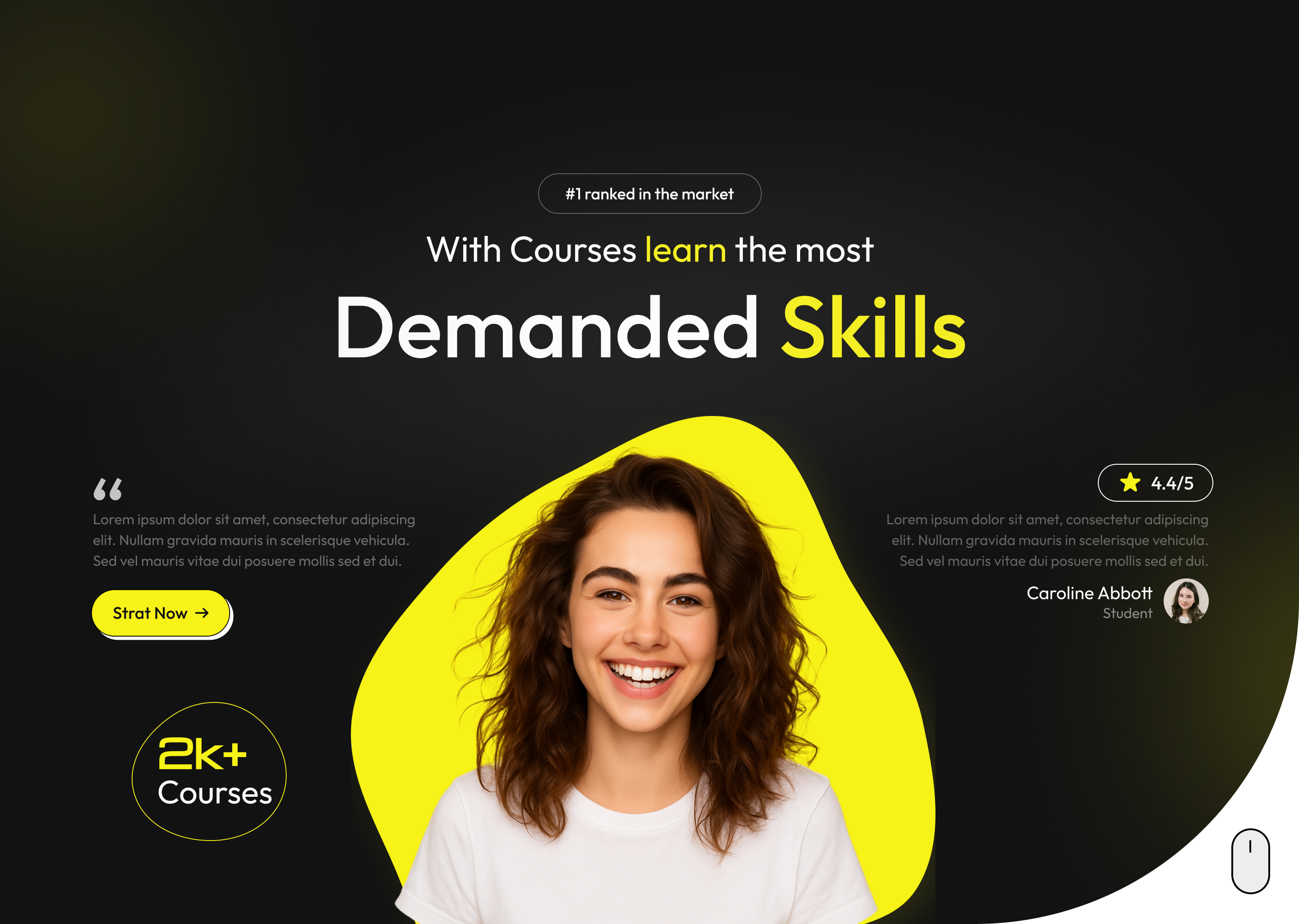 Engaging hero section for an online learning platform, emphasizing skill development with testimonials and course statistics.